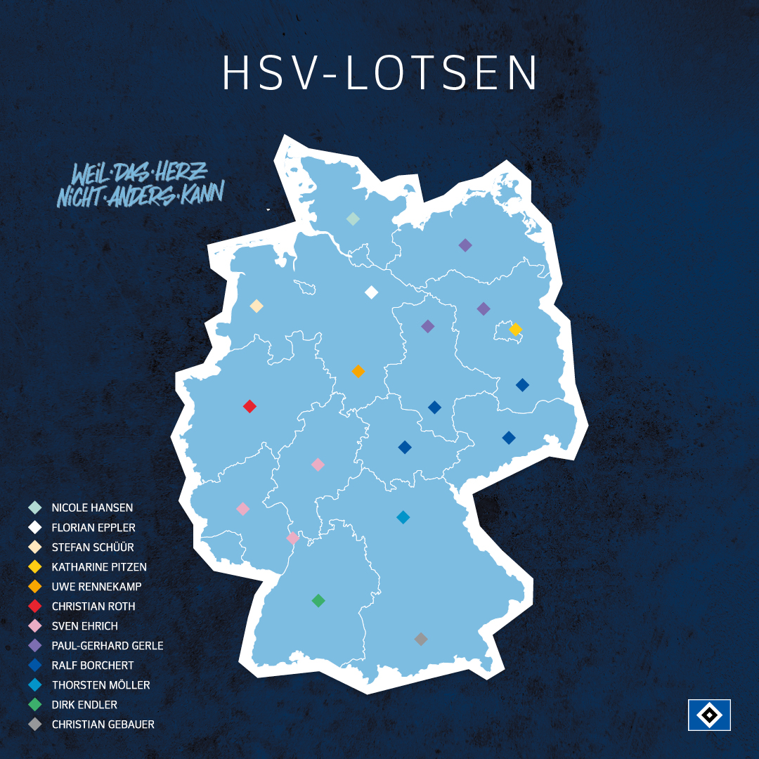 Die HSV-Lotsen stehen in unterschiedlichen Regionen Deutschlands als Ansprechpartner zur Verfügung, vermitteln die Werte des HSV und halten die Region zusammen. Zudem werden sie bei den Auswärtsspielen für HSV-Fans und Fanclubs der jeweiligen Regionen vor Ort anzutreffen sein.