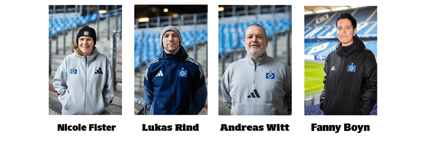 HSV-Fanbeauftragte in Person von Nicole Fister, Lukas Rind, Fanny Boyn und Andreas Witt erreicht ihr mit der Stadionöffnung um 16.00 Uhr am Gästeeingang. |