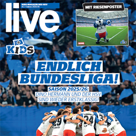 Spannende Einblicke in die Welt der HSV-Profis, jede Menge Spaß mit Dino Hermann, Tipps und Tricks von der HSV-Fußballschule und vieles mehr… Die HSVlive KIDS ist ein echtes Highlight. Und das Beste: Wer die HSVlive KIDS durchgelesen hat, kann sie sich an die Wand hängen. Klingt komisch? Im Inneren jeder Ausgabe befindet sich ein riesiges HSV-Poster!