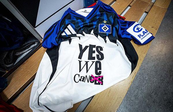 Für den guten Zweck: Die speziell für das Heimspiel gegen Dortmund gestalteten Trikots mit Sonderflock werden ab sofort auf der HSV-Auktionsplattform versteigert. Die Erlöse kommen einer yeswecan!cer-Kampagne zugute, die junge Menschen zur HPV-Impfung ermutigen möchte.