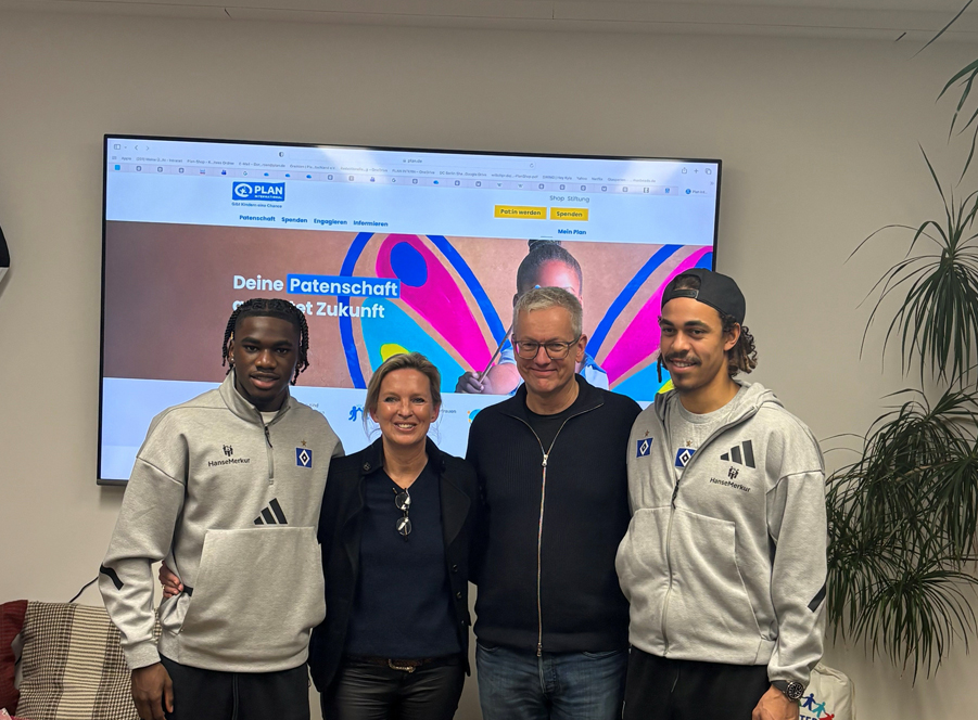 Gemeinsam mit der HELM AG unterstützt der HSV die Arbeit von Plan International und schafft durch die Ärmelpartnerschaft Sichtbarkeit für Kinderrechte. Die HSV-Profis Yussuf Poulsen und Fabio Balde erhielten jetzt konkrete Einblicke in Plans Projekte.