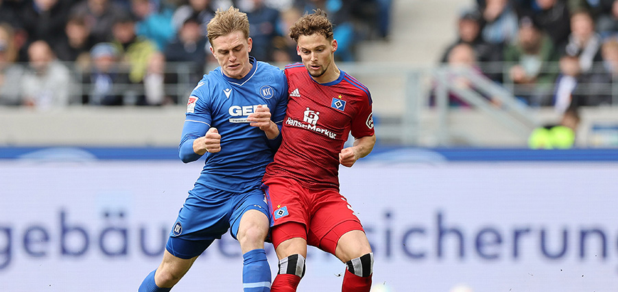 On Sunday (12 March), HSV lost its matchday 24 away match at Karlsruher SC with 2:4. In front of 26,000 spectators at the sold-out Wildpark, Nebel (10th), Jensen (17th) and Schleusener (32nd) gave the hosts a clear lead in the first half of the match, while a brace from Robert Glatzel (50th/80th) added to the suspense. The yellow card for Javi Montero (87th) and the second goal by Schleusener (89th) put an end to the hopes of the Rothosen. To make matters worse, HSV head coach Tim Walter was shown the red card shortly before the end.