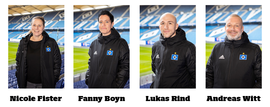HSV-Fanbeauftragte in Person von Nicole Fister, Fanny Boyn, Lukas Rind und Andreas Witt erreicht ihr mit der Stadionöffnung um 13.30 Uhr am Gästeeingang. |