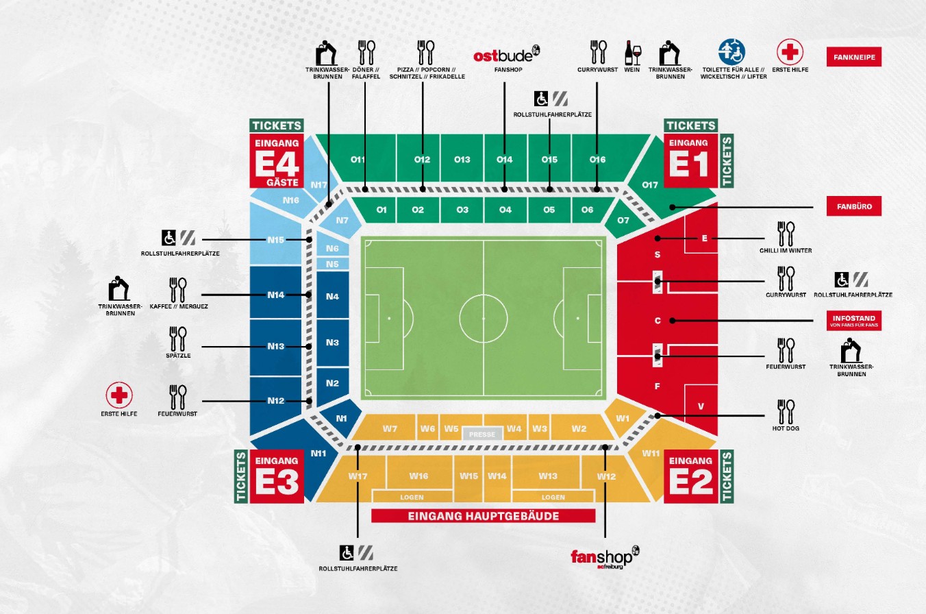 - Der Gästesektor befindet sich am Eingang E4.