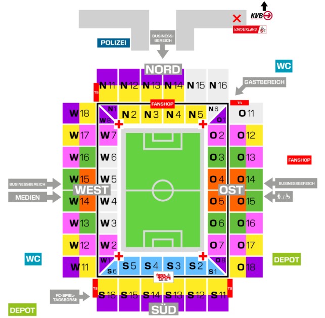 - Der Gästesektor befindet sich in den Blöcken N6, N15 und N16.