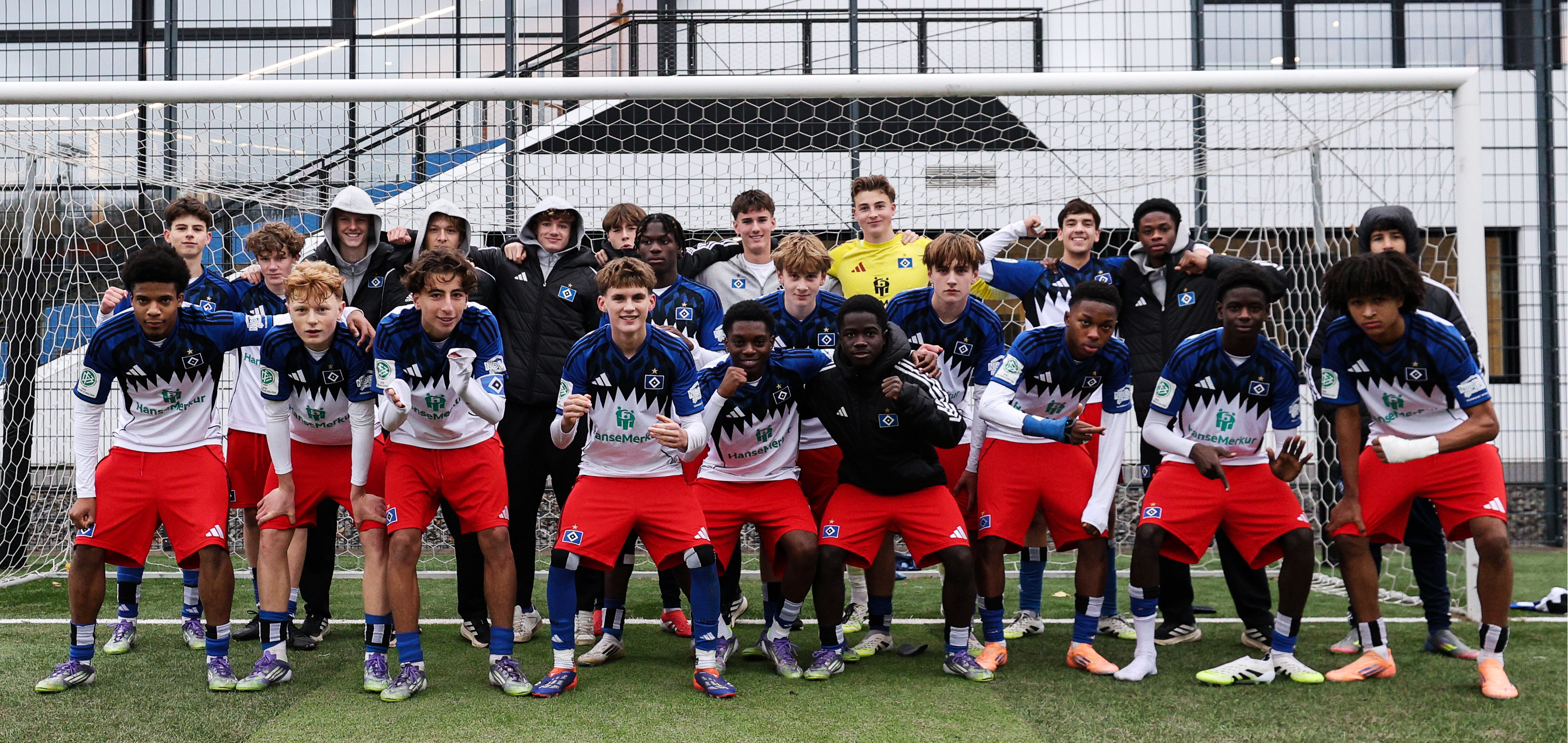 Mit diesem Selbstvertrauen empfingen die Rothosen nun am zurückliegenden Sonnabend (15. November) den Tabellenführer VfL Wolfsburg am Campus. Auf dem Kunstrasenplatz konnten die Reddersen-Schützlinge ihre Qualitäten unter Beweis stellen und feierten nach Treffern von Fiete Krause (41.) und Thierry Sedlatschek (72.) einen 2:0 (1:0)-Heimsieg. Nach diesem Erfolg gegen den Spitzenreiter befinden sich die Hamburger mit einem Punkt hinter dem drittplatzierten Hallescher FC wieder in Schlagdistanz zur Hauptrunde in Liga A. Denn die ersten drei Teams aus den Vorrundengruppen schaffen den Sprung in diese Spielklasse. Passenderweise kommt es bereits am Sonnabend (22. November, Anstoß: 11 Uhr) zum direkten Aufeinandertreffen in Halle. In der Woche darauf empfängt die U17 den 1. FC Magdeburg (29. November, Anstoß: 13 Uhr) zum Abschluss der Vorrunde.