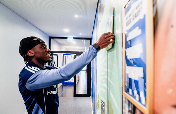 Als Wertschätzung für mehr als 500 Einsatzminuten für die Profis und als Motivation, einen Impact in der Bundesliga zu erzielen: Fabio Balde eröffnet die neue „Wall of Fame“ im HSV-Campus.