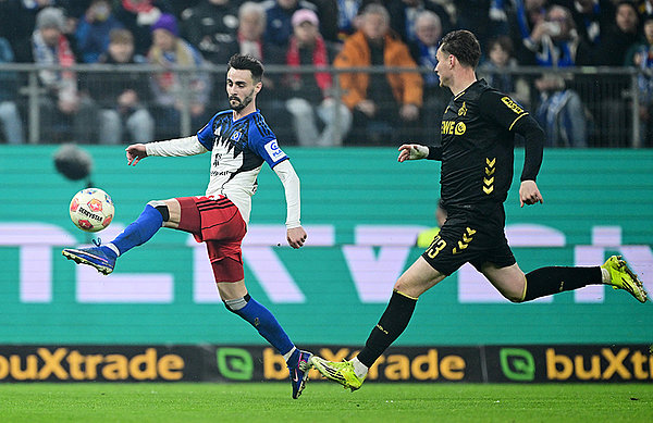 Im Vergleich zum 2:1-Auswärtssieg gegen den VfL Wolfsburg veränderte Cheftrainer Merlin Polzin die Startformation auf drei Positionen: Für Daniel Elfadli, Philip Otele und Jean-Luc Dompe rückten Warmed Omari, Fabio Vieira und Damion Downs in die Startelf. Die Anfangsphase im energiegeladenen Volksparkstadion gestaltete sich auf dem Rasen zunächst ruhig und spielte sich zwischen den Strafräumen ab, jedoch ohne nennenswerte Chancen beider Mannschaften. Stattdessen lieferten sich Hamburg und Köln in der ersten halben Stunde ein taktisch geprägtes Duell mit sehr vielen Zweikämpfen – mehr als 60 an der Zahl.
