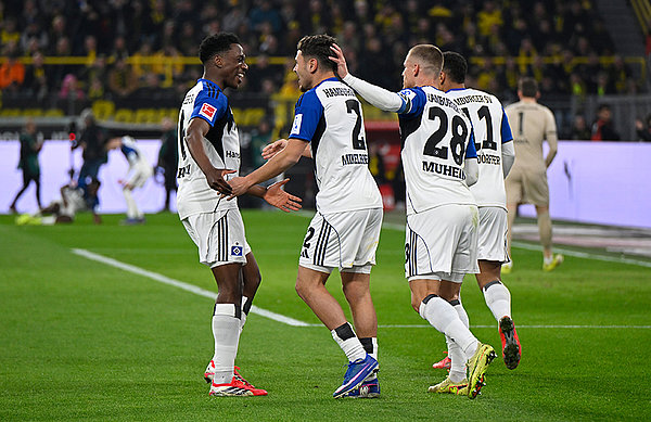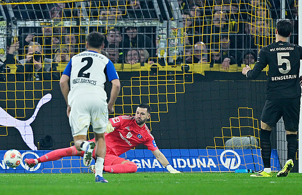 Der Hamburger SV musste sich am Sonnabend (21. März) im Bundesliga-Topspiel bei Borussia Dortmund im Rahmen des 27. Spieltags mit 2:3 (2:0) geschlagen geben. Vor 81.365 Zuschauern im ausverkauften Signal Iduna Park präsentierten sich die Rothosen im ersten Durchgang hellwach und hocheffizient und gingen nach Toren von Otele (19.) und Sambi Lokonga (38.) mit einer 2:0-Führung in die Pause. Im zweiten Durchgang legten die Hausherren dann den Schalter um, erhöhten im Minutentakt den Druck und drehten letztlich durch zwei verwandelte Elfmeter von Bensebaini (73./84.) sowie einen weiteren Treffer von Silva (79.) die Partie gänzlich.