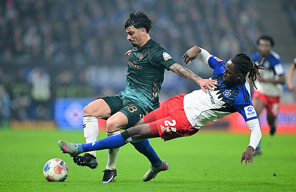 Der Hamburger SV hat am 2. Adventssonntag (7. Dezember) im Rahmen des 13. Bundesliga-Spieltags das Nordderby gegen den SV Werder Bremen mit 3:2 (0:1) gewonnen. Vor 56.300 Zuschauern im ausverkauften Volksparkstadion lieferten sich beide Teams einen ebenso umkämpften wie ausgeglichenen ersten Durchgang, in dem der HSV die etwas besseren Chancen hatte, dann aber kurz vor der Pause durch einen Treffer von Stage (45.) mit 0:1 in Rückstand geriet. Nach dem Seitenwechsel drängte der HSV verstärkt auf den Ausgleich. Mit gleich doppeltem Erfolg: Denn nach Treffern von Sambi Lokonga (63.) und Luka Vuskovic (75.) drehten die Rothosen das Spiel komplett. Auch den unmittelbar folgenden 2:2-Ausgleich durch Njinmah (78.) konterten die Hamburger in einem denkwürdigen Nordderby und erzielten durch Kapitän Poulsen (84.) spät den viel umjubelten 3:2-Siegtreffer.