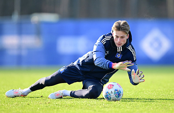 Zum Abschlusstraining am Donnerstag (22. Januar) konnte HSV-Coach Polzin personell mit einer Ausnahme aus dem Vollen schöpfen. Einzig Kapitän Yussuf Poulsen, der derzeit an einer Sprunggelenksverletzung laboriert, stand nicht zur Verfügung. Ansonsten mischten alle Rothosen auf dem Trainingsplatz eifrig mit und brennen auf einen Einsatz im Stadtderby – darunter auch Defensiv-Allrounder Daniel Elfadli und Mittelfeldspieler Sambi Lokonga. Erstgenannter fehlte am vergangenen Spieltag gegen Borussia Mönchengladbach (0:0) aufgrund seiner Gelb-Roten Karte aus dem Freiburg-Spiel (1:2) gesperrt, Zweitgenannter wegen eines Schlags auf die Wade, den er zuvor im Training erlitten hatte. Beide Akteure könnten zurück ins HSV-Aufgebot kehren. Zu diesem möchte auch Schlussmann Sander Tangvik (Foto), der unter der Woche als zweiter Winter-Neuzugang vorgestellt wurde, erstmals gehören.