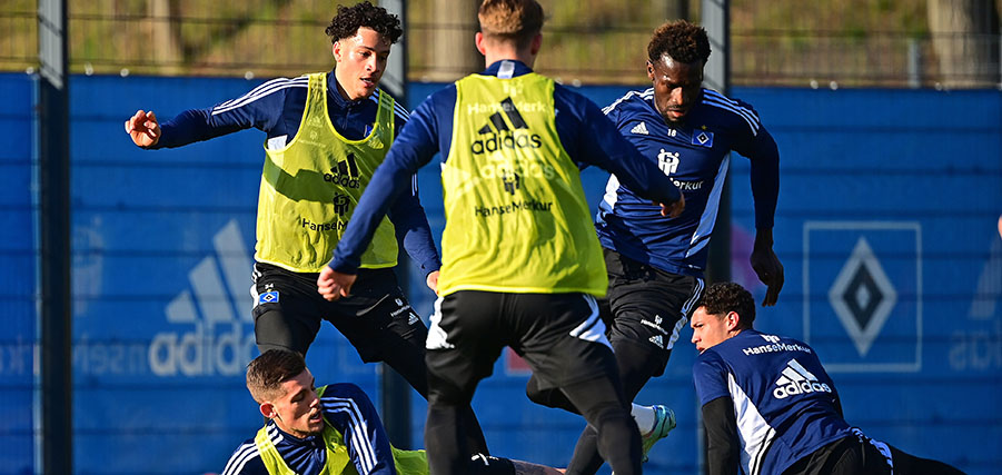 Dem Coach gefällt es, momentan mit Ausnahme der Langzeitverletzten Suhonen, Amaechi, Krahn und Mickel die Qual der Wahl zu haben. Hinzu kommen perspektivisch auch immer wieder interessante Optionen aus dem eigenen Nachwuchs. U19-Stürmer Tom Sanne ließ in der Hinrunde beispielsweise aufhorchen, zuletzt stand U21-Spieler Nicolas Oliveira Kisilowski im Kader der HSV-Profis. „Wir haben es geschafft, dass die Jungs hier erste Profiluft schnuppern, aber auch bereitwillig in ihre Teams zurückkehren und dort mit Leistungen wieder überzeugen. Wir haben hier mit Jule (Co-Trainer Julian Hübner, Anm. d. Red.) jemanden, der immer wieder in Kontakt mit den Nachwuchstrainern ist.“ Eine Rolle spielt dabei U19-Trainer Oliver Kirch, der als angehender Fußballlehrer gegenwärtig auch beim Profi-Team hospitiert und heute mit auf dem Trainingsplatz stand. Ein intensiver Konkurrenzkampf innerhalb des Teams, aufrückende Jungs aus dem Nachwuchs und eine enge Verzahnung innerhalb des HSV – Tim Walter ist zufrieden mit dem gegenwärtigen Trainingsalltag und freut sich mit Blick auf das Bielefeld-Heimspiel auf die nächsten Trainingseindrücke.