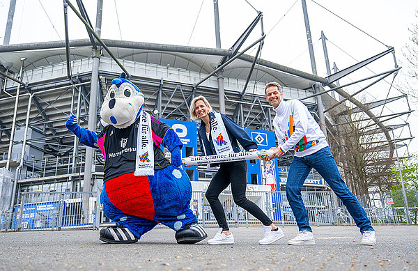 Laura Ludwig war gemeinsam mit Steffen Rülke, Leiter der Olympia-Bewerbung der Stadt Hamburg, beim Startschuss am Volksparkstadion vor Ort. „Es ist großartig zu sehen, wie viel Energie und Begeisterung hier in Hamburg für den Sport zusammenkommen. Der Staffellauf mit Dino Hermann lädt Vereine sowie Sportlerinnen und Sportler dazu ein, die Olympiabewerbung gemeinsam sichtbar durch unsere Stadt zu begleiten. Ich bin sehr gespannt, welche Vereine an dieser tollen Aktion teilnehmen werden“, erklärte die ehemalige Beachvolleyspielerin und Olympiasiegerin von 2016.