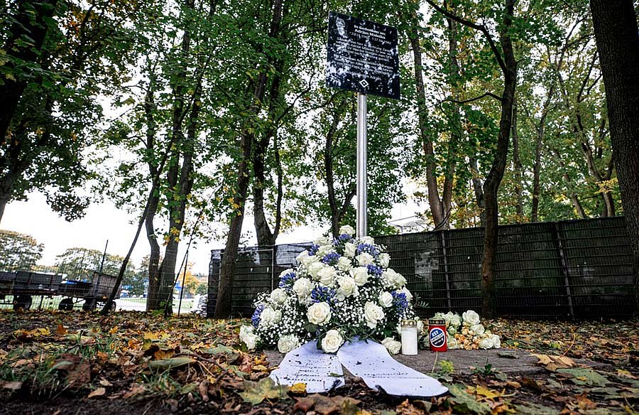 Zum 40. Todestag wurde 2022 am Volksparkstadion eine Gedenktafel eingeweiht. Sie befindet sich zwischen der Ticketbox am Eingang Nord-Ost und dem Fahrradparkplatz in Richtung Schnackenburgallee. Auch zum diesjährigen 43. Jahrestag legten Vertretern, Fans und Wegbegleitern am Morgen des 17. Oktober 2025 Kränze und Blumen am Gedenkort nieder (Foto unten).