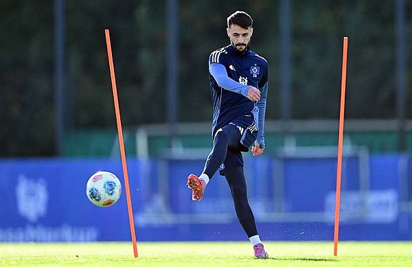 HSV-Coach Merlin Polzin hatte nach der unglücklichen 1:2-Niederlage bei RB Leipzig anerkennend erwähnt, mit der Leistung seiner Mannschaft und damit einhergehend der Entwicklungen der vergangenen Wochen zufrieden zu sein. Diese Entwicklung wurde auch in der aktuellen Trainingswoche fortgeführt und an den zu verbessernden Dingen gearbeitet. Hierbei konnte der Coach nahezu auf sein gesamtes Personal zurückgreifen. "Warmed Omari fällt bekanntermaßen weiterhin aus", erklärt Polzin, "und Giorgi Gocholeishvili haben wir unter der Woche nach seinem Zusammenprall mit dem Pfosten aus der Vorwoche weiter unter Beobachtung gehabt. Wir sind aber positiv gestimmt." Gilt auch für Fabio Vieira (Foto), der aufgrund seiner Knieprellung und einer Zwei-Spiele-Sperre zuletzt nicht zur Verfügung stand, er konnte sein Pensum stetig steigern und soll auch am Wochenende eine Option für den Kader sein. „Fabio hat in puncto Belastung gute Schritte voran gemacht. Es wird nach der Pause und aufgrund der Leistungen der anderen Spieler sicherlich noch nicht so sein, dass er direkt von Anfang an spielt, aber er ist definitiv in der Verfassung, wieder in den Kader zu kommen“, sagte Polzin dazu am Donnerstag in der Pressekonferenz, in der er noch einmal bekräftigte, dass er vollstes Vertrauen in seine Mannschaft habe: Wir sind der Herausforderer, aber wollen diese Rolle auf unsere Art und Weise interpretieren. Heißt: Wir reden uns nicht kleiner, als wir sind, sondern wir wissen, was wir können."