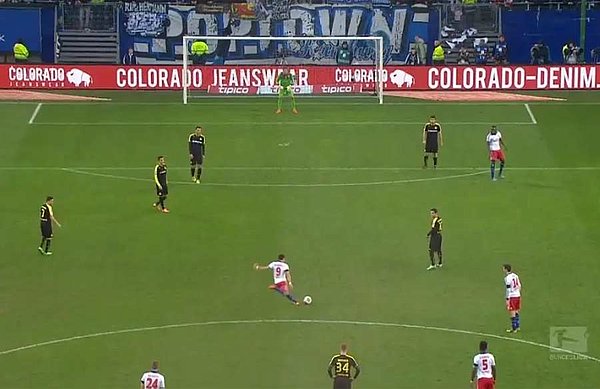 Dafür gab es in der Folgesaison ordentlich Haue, als sich der BVB mit einem 6:2-Heimsieg revanchierte. Richtig viele Gegentore gab es auch 2016 beim 2:5 im Volkspark, als der HSV nach 50 Minuten bereits mit 0:4 zurücklag – nach vier Treffern von Pierre-Emerick Aubameyang. Besser lief es da schon 2014 und 2015, als die Rothosen ihre Heimspiele gewinnen konnten – und wie! Die 2014er-Partie kursiert bis heute immer und immer wieder – speziell in den sozialen Netzwerken – aufgrund dieses bis heute unglaublichen Freistoßtores von Hakan Calhanoglu, der den Ball aus mehr als 40 Metern in den linken Giebel hämmerte und alle Beteiligten damit quasi die Erfindung des heutigen Flatterballs erlebten (Foto). Und das 2015er-Spiel gehörte zu den wohl kuriosesten Heimsiegen, da der HSV das Duell mit lediglich 30 Prozent Ballbesitz und nur zwei Torschüssen mit 3:1 gewann – das dritte Tor hatte Mats Hummels nach einer Ecke beigesteuert.