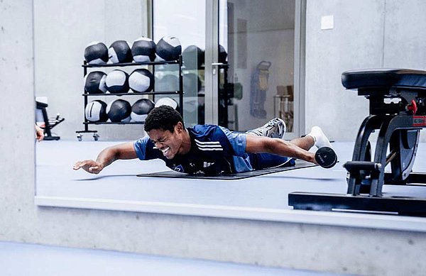 Die Operation ist nun vier Wochen her. Ich kann meinen linken Fuß wieder mit mehr Gewicht belasten und im nächsten Schritt geht es darum, wieder ohne die Gehhilfen zu laufen. Ich möchte meine Reha konsequent durchziehen, mich dabei aber gleichzeitig nicht zu sehr unter Druck setzen. Das ist ein schmaler Grat. Natürlich will ich auf der einen Seite so schnell wie möglich zurück auf den Platz, auf der anderen Seite ist es aber auch wichtig, den Reha-Prozess zu respektieren und nicht zu overpacen. Ich versuche das richtige Maß zu finden – und einfach von Tag zu Tag besser zu werden.