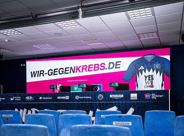 Die heutige Pressekonferenz zum bevorstehenden Bundesliga-Spiel zwischen dem Hamburger SV und Borussia Dortmund war etwas Besonderes. Angesichts des ersten Vergleichs der beiden Traditionsclubs seit mehr als sieben Jahren war das Medieninteresse ungewöhnlich hoch. Zudem war schon beim Anblick der knallpinken Presserückwand eine andere Note als beim sonst üblichen Frage-Antwort-Ritual zu erkennen: Denn das Heimspiel gegen den BVB steht nicht nur im Zeichen der sportlichen Tradition der beiden Clubs, sondern auch im Rahmen der Aktion „Wir gegen Krebs – Vorsorge kann Leben retten“. Dabei engagieren sich der Hamburger SV, Hauptpartner HanseMerkur und die Krebs-Selbsthilfeorganisation yeswecan!cer gemeinsam für Krebsvorsorge.