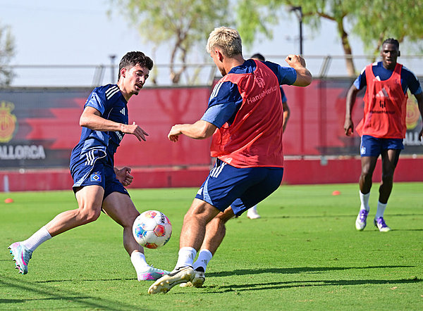 Auch die Profi-Mannschaft des RCD Mallorca absolvierte am Vormittag eine Trainingseinheit auf dem Hauptplatz des vereinseigenen Geländes. Das Team um Ex-Bundesliga-Profi Omar Mascarell (98 Spiele für Eintracht Frankfurt und Schalke 04) startet am 16. August gegen den FC Barcelona in die LaLiga-Saison 2025/26. Damit ist auch für die Mallorquiner das Testspiel gegen den HSV am Sonnabend (9. August, Anstoß: 20 Uhr) die Generalprobe vor dem Pflichtspielauftakt.