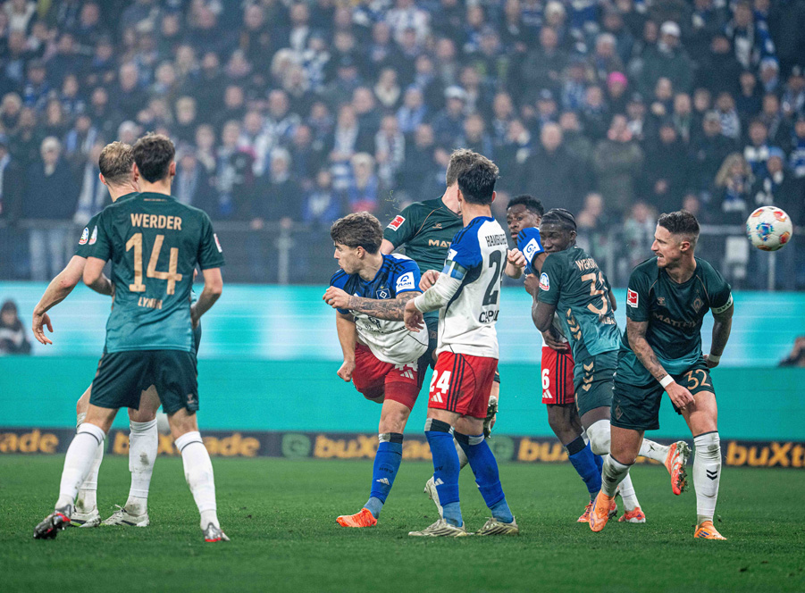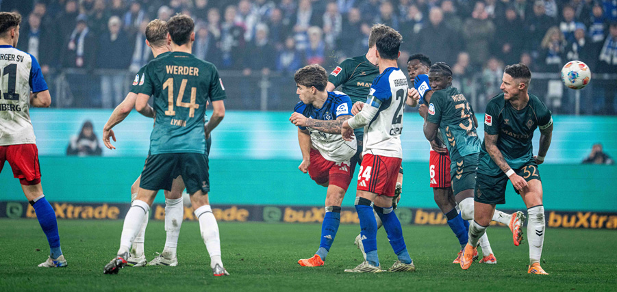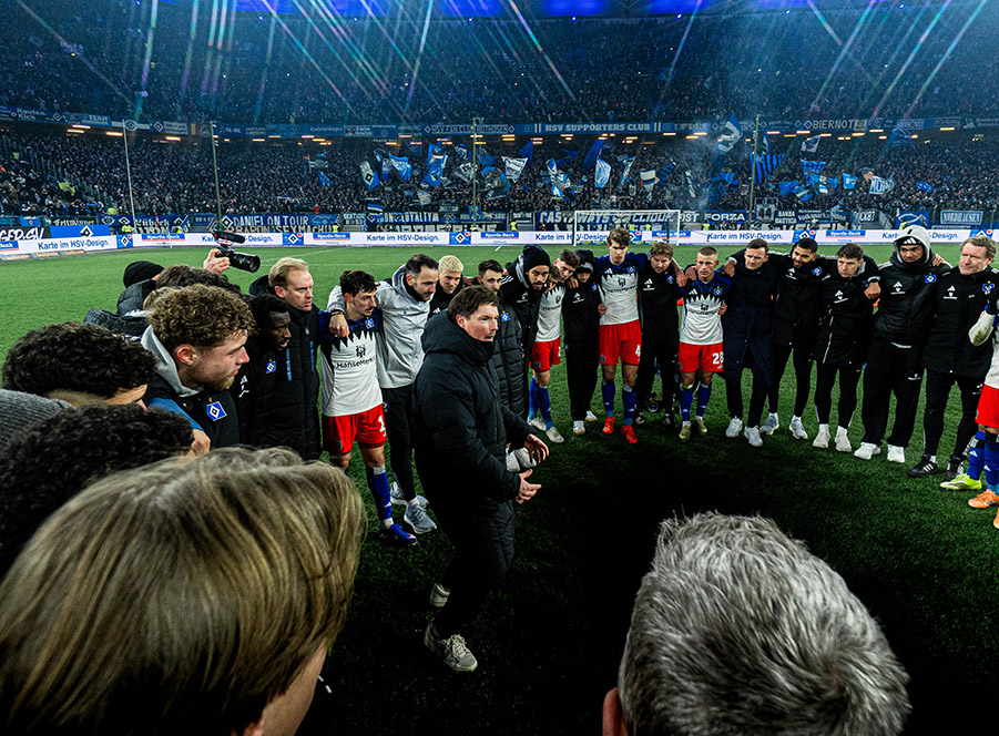Im Bundesliga-Topspiel gegen den Tabellenführer holt der HSV ein verdientes 2:2-Unentschieden. Im stimmungsgeladenen Volksparkstadion treffen Vieira und Vuskovic für die Rothosen.