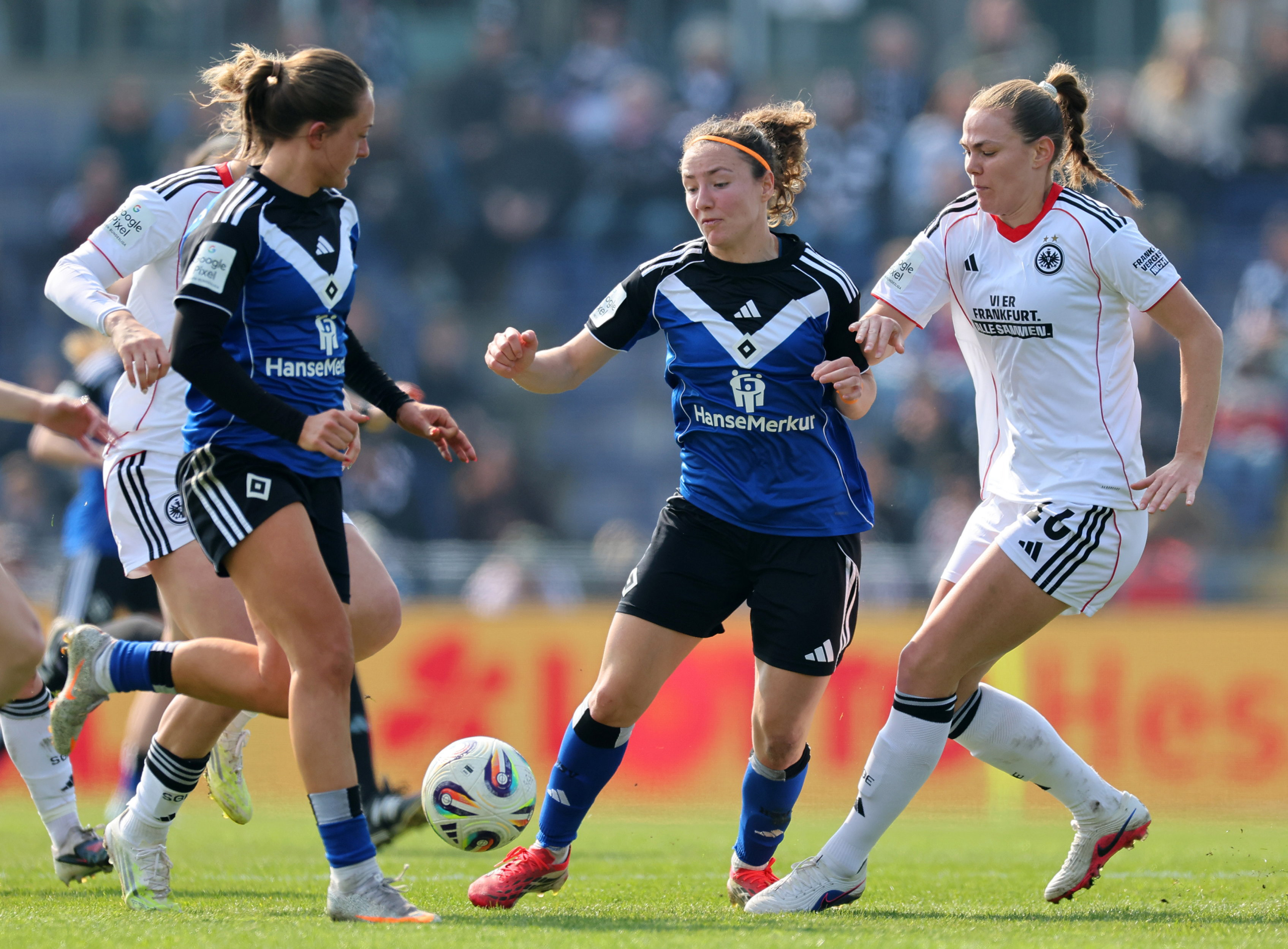 Die HSV-Frauen haben das Auswärtsspiel bei der Eintracht aus Frankfurt am heutigen Sonnabend mit 1:4 verloren. Camilla Linberg hatte die Rothosen mit einem sehenswerten Freistoß zurück ins Spiel gebracht.